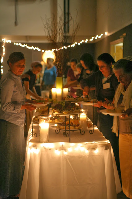 That moment when the electricity goes out mid-banquet. :) Nelson talks (trying to act natural) to keep the audience assured and Mother shines a flashlight on him. The men go for the bus, the extension cords, and the ladies go for more candles, and watch the sparking electric line outside (along with half the banquet attendees. :)). What a party. So much fun, actually! :) God really took care of arranging things in a way we could be back in working-order soon. Besides, singing hymns by candle-light is always special. :)
